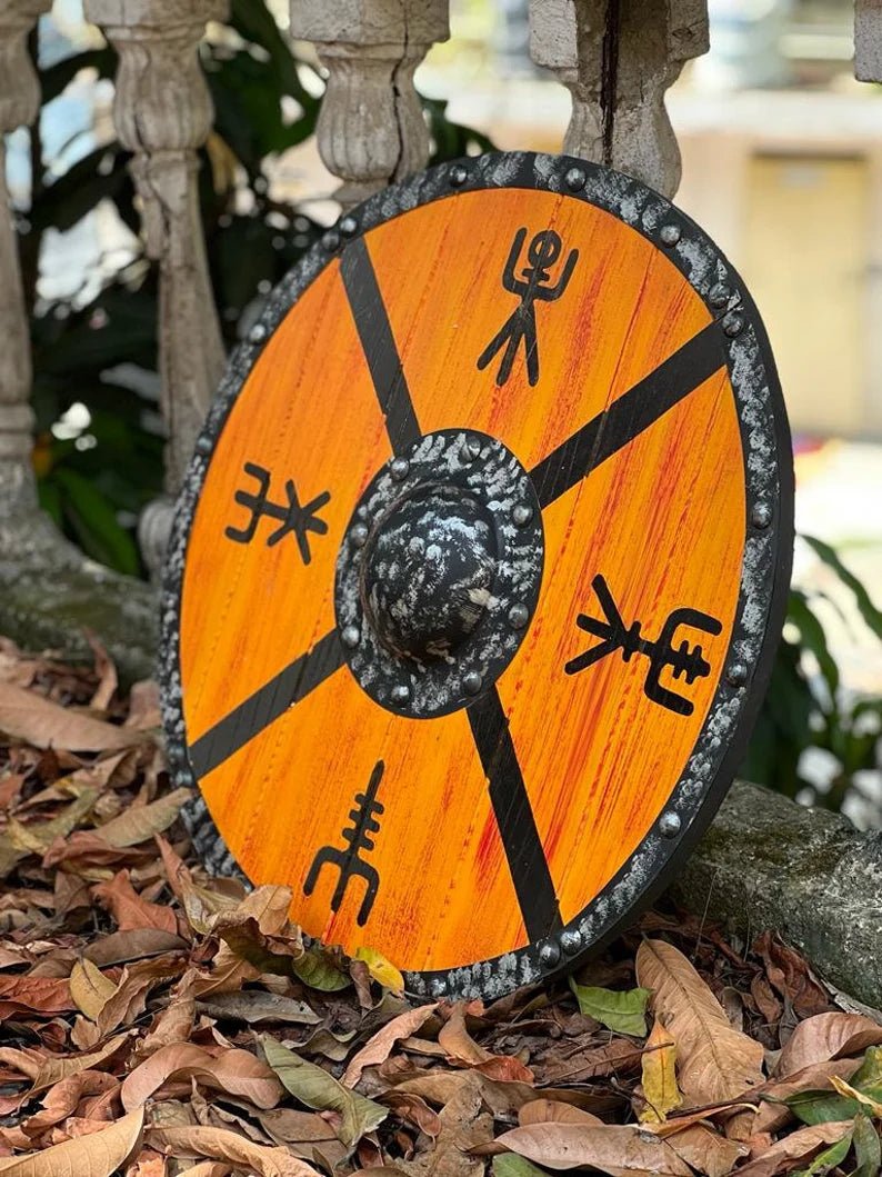 - Intricate Finish: The shield features an intricate dragon ship armor design, capturing the essence of medieval battle gear. The finish is expertly applied to bring out the natural beauty of the wood and the fine detailing of the artwork.