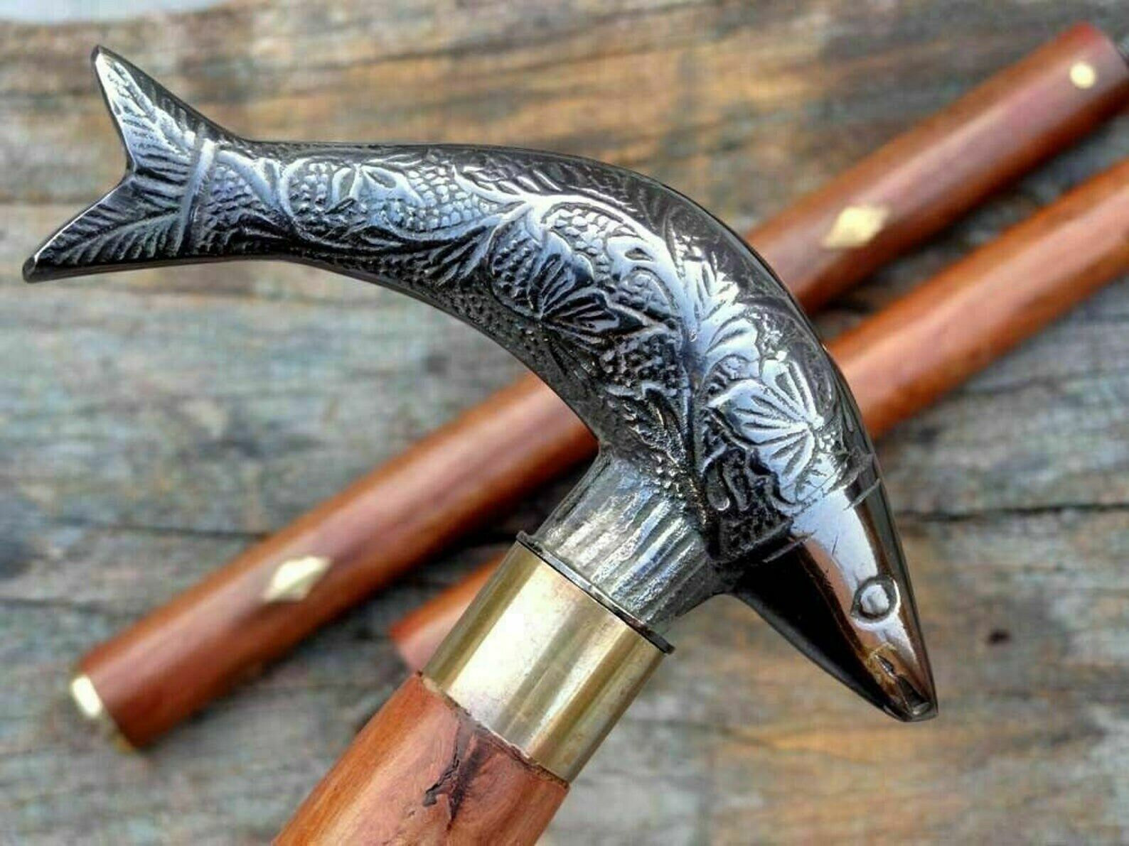 Rare Fish Handle Steampunk Handmade Victorian Walking Cane Stick for Men and Women